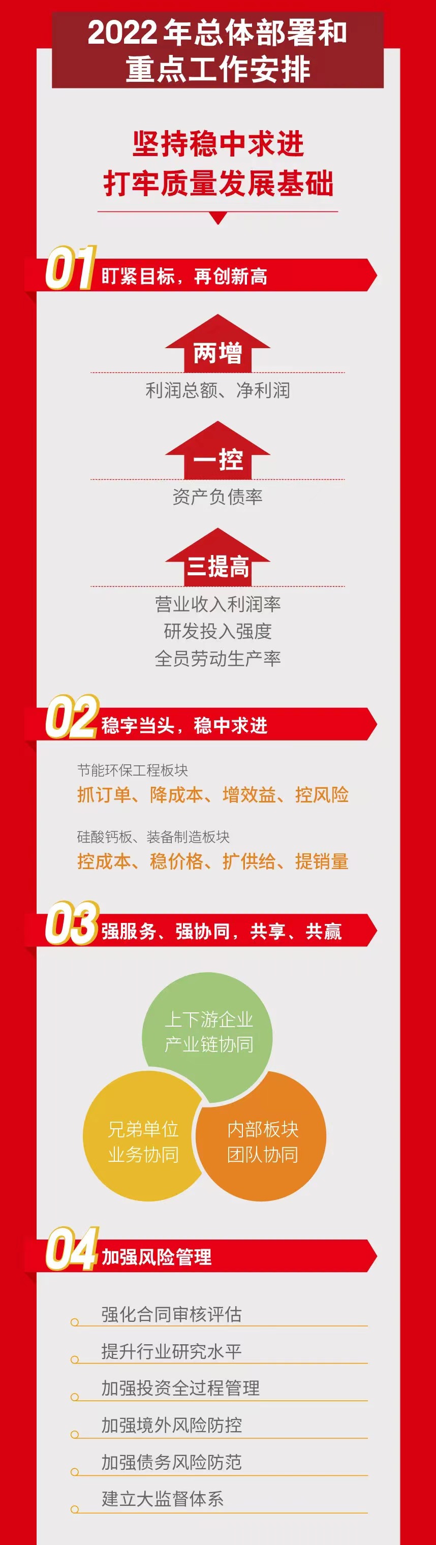 2月14日,中材節(jié)能股份有限公司召開(kāi)2022年度工作會(huì)議,工作會(huì)議上總結(jié)回顧了公司2021年的工作情況,研究部署了2022年重點(diǎn)工作,干貨滿滿,下面讓我們通過(guò)一圖讀懂來(lái)了解工作會(huì)議的主要內(nèi)容吧!