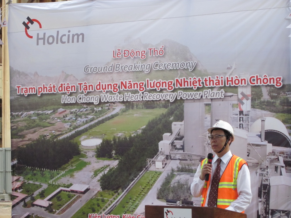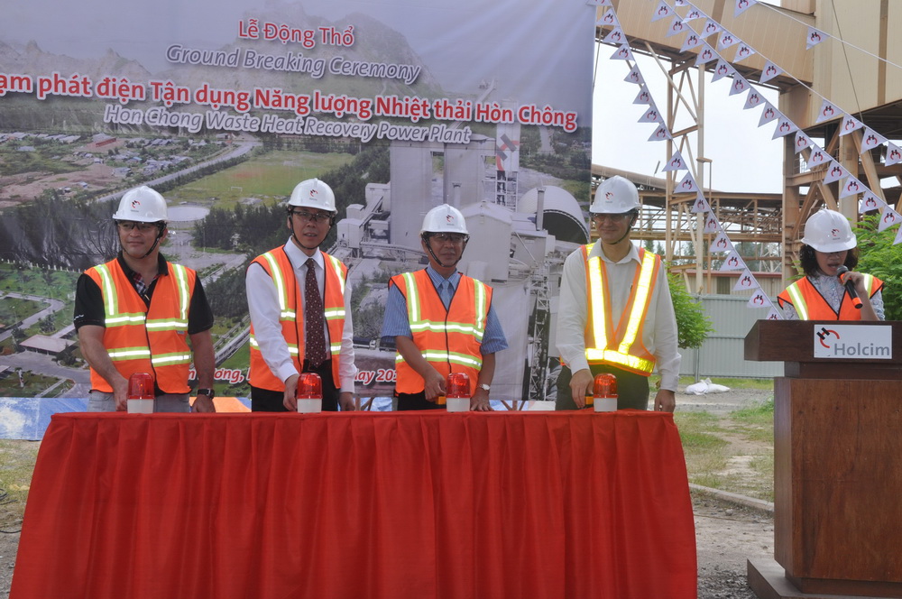 2011年5月26日,由中材節(jié)能股份有限公司總承包的越南HOLCIM余熱發(fā)電項目在越南Kien Giang省的Hon Chong縣舉行了開工典禮。越南Kien Giang省省長Mr. Nguy?n Tr?n Nam、越南HOLCIM技術(shù)總監(jiān)Mr.Francois Goulut、Hon Chong水泥廠廠長Mr. Aridavid Lozano與中材節(jié)能股份有限公司總裁胡也明一同啟動開工按鈕,這是中材節(jié)能繼泰國京都萬噸水泥生產(chǎn)線余熱發(fā)電項目之后與HOLCIM集團的再次合作。