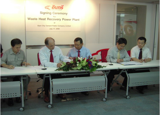 中材節(jié)能繼與全球著名的LAFARGE、HEIDELBERG公司簽訂水泥窯余熱發(fā)電項(xiàng)目總包合同之后,在國際市場(chǎng)再傳捷報(bào)。經(jīng)過深入、細(xì)致、嚴(yán)謹(jǐn)?shù)丶夹g(shù)和商務(wù)談判,中材節(jié)能與HOLCM集團(tuán)簽訂了泰國京都(SIAM CITY)水泥公司的兩條萬噸水泥線余熱發(fā)電總承包合同,成就該領(lǐng)域國際第一大單。