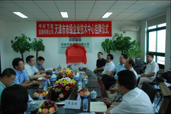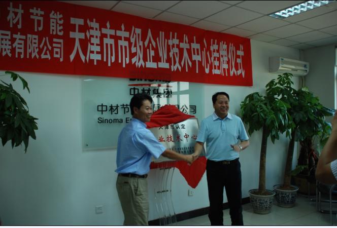 中材節能發展有限公司改組設立一周年之際,獲得天津市認定企業技術中心。2008年9月1日,公司舉行了簡短的揭牌儀式。天津市北辰區區長馬明基、副區長薛輝,區工經委主任裘地、副主任徐繼清,科委主任張昊君等區領導,北辰科技園區總經理李志勝,中材節能發展有限公司總經理何新平、副總經理楊德廣、副總工程師董蘭起等出席揭牌儀式。
