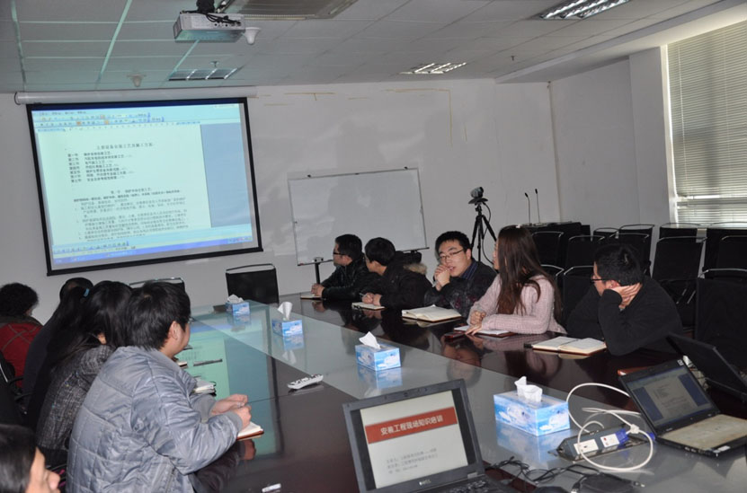 培訓由工程部具有豐富經驗的項目經理劉霄主講。劉霄結合他在拉法基重慶地維項目、都江堰項目的實踐經驗,對項目安裝程序、設備進場手續辦理、設備安裝過程、操作規范等,進行了詳細的講解。參加培訓的員工認真聽講,并針對各自在實際工作中存在的困惑或問題,向講師進行了互動咨詢,培訓老師一一作了解答。