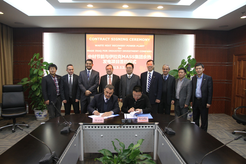 2013年12月18日,中材節(jié)能與伊拉克MASS工業(yè)投資集團(tuán)(MASS Iraq for Industry Investment Company)在昆山成功簽署了伊拉克首個(gè)水泥窯余熱發(fā)電項(xiàng)目總承包合同。這是中材節(jié)能繼在承接沙特、阿聯(lián)酋水泥窯余熱發(fā)電總承包工程之后,在中東市場上獲得的又一重要訂單。該項(xiàng)目是利用伊拉克MASS集團(tuán)旗下的SCP水泥廠3條日產(chǎn)5000噸水泥生產(chǎn)線建設(shè)的余熱發(fā)電項(xiàng)目,該項(xiàng)目總裝機(jī)規(guī)模為25MW。