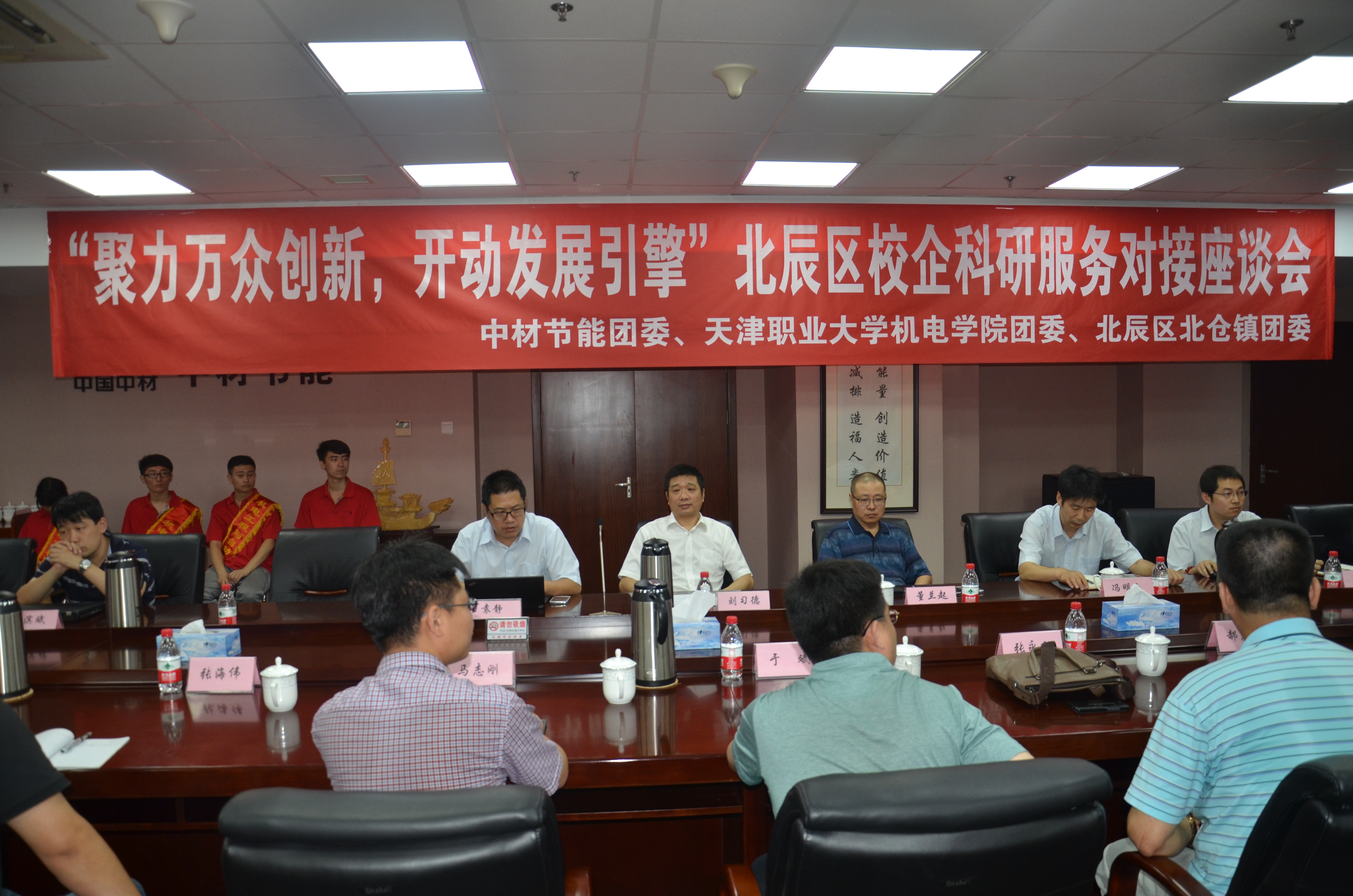 近日,由中材節(jié)能團(tuán)委、北辰區(qū)團(tuán)委、天津職業(yè)大學(xué)團(tuán)委聯(lián)合組織的“聚力萬眾創(chuàng)新,開啟發(fā)展引擎”---北辰區(qū)校企科研服務(wù)對接座談會(huì)在中材節(jié)能21樓會(huì)議室召開。北辰區(qū)團(tuán)委書記于斌、副書記馬志剛,天津職業(yè)大學(xué)機(jī)電學(xué)院副院長張永飛,公司黨委書記劉習(xí)德、總工程師董蘭起等參加了會(huì)議。