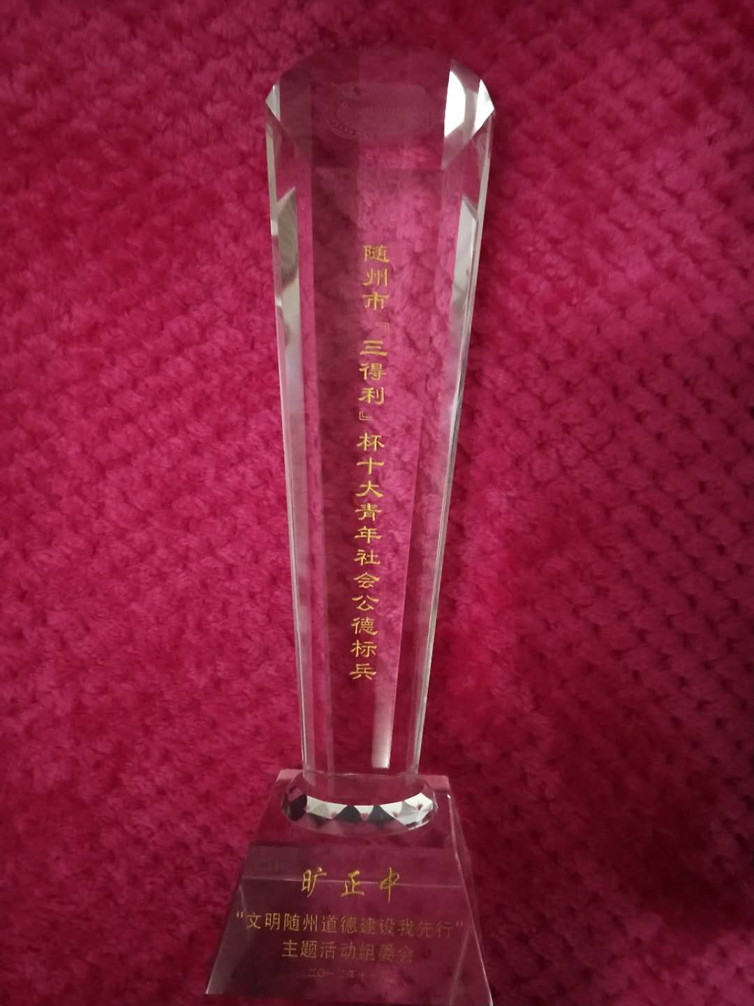 到武漢建材院工作以前曠正中是解放軍某部一名干部。96年剛?cè)胛闀r,他是一名通信兵,在幫老百姓修理電話時,發(fā)現(xiàn)一老人生病臥床無人照料,他就背起老人送醫(yī)院治療。在照料中,得知鄒珍阿姨已經(jīng)75歲了,老伴已經(jīng)過逝,沒有兒女,身體狀況也不好,生活孤獨無依靠,他就像對待自己的母親一樣開始照顧鄒媽媽,2016年9月3日老人以95歲高齡含笑離開了這個世界。他一直把這件事埋藏在心里,默默地做奉獻,2012年被朋友向隨州日報尋找好人欄目爆料,大眾才知道他十幾年無私照顧老人的事跡,當年他被隨州市評為“十大青年社會公德標兵”。