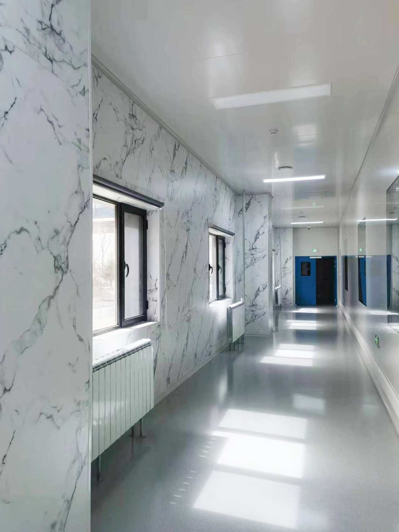 Sinoma Hankun? fire-resistant decorative panels are used as wall decorative materials for corridors and elevator halls in Fuerjia Northern Beauty Valley Biomedical Industry Base. Sinoma Hankun? fire-resistant decorative panels are made of high-density non-asbestos calcium silicate board substrate with decorative surface layer and protective layer by professional equipment through high temperature and high pressure. It is a green building material product that combines fire resistance, environmental protection, easy cleaning and fast modular installation. With its superior characteristics, it is perfectly suitable for schools, hotels, office buildings and other architectural fields that have high requirements for fire prevention, environmental protection and fast installation.